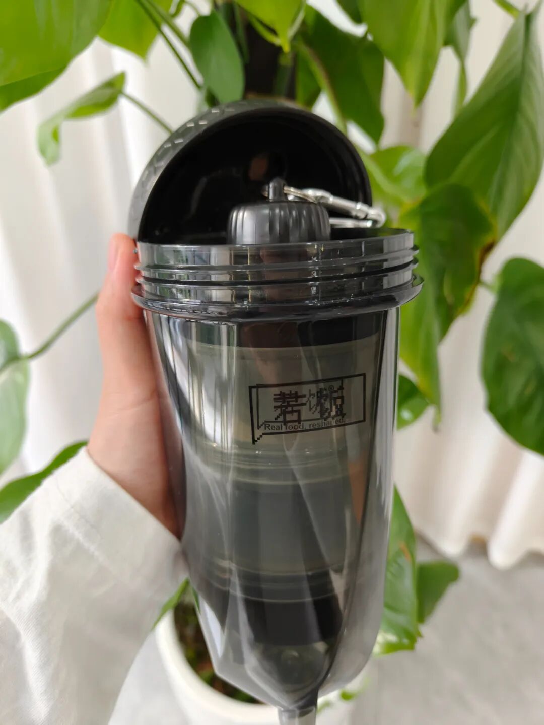 2. 食品级PP材质,非常轻便,顶部有金属快扣可随意悬挂携带。