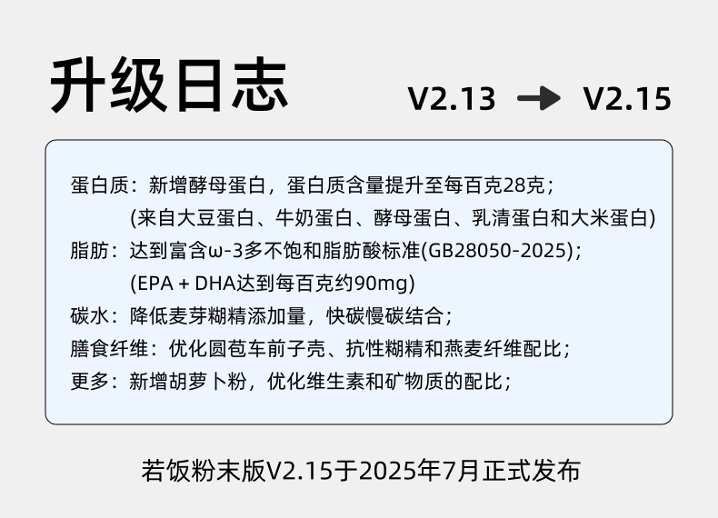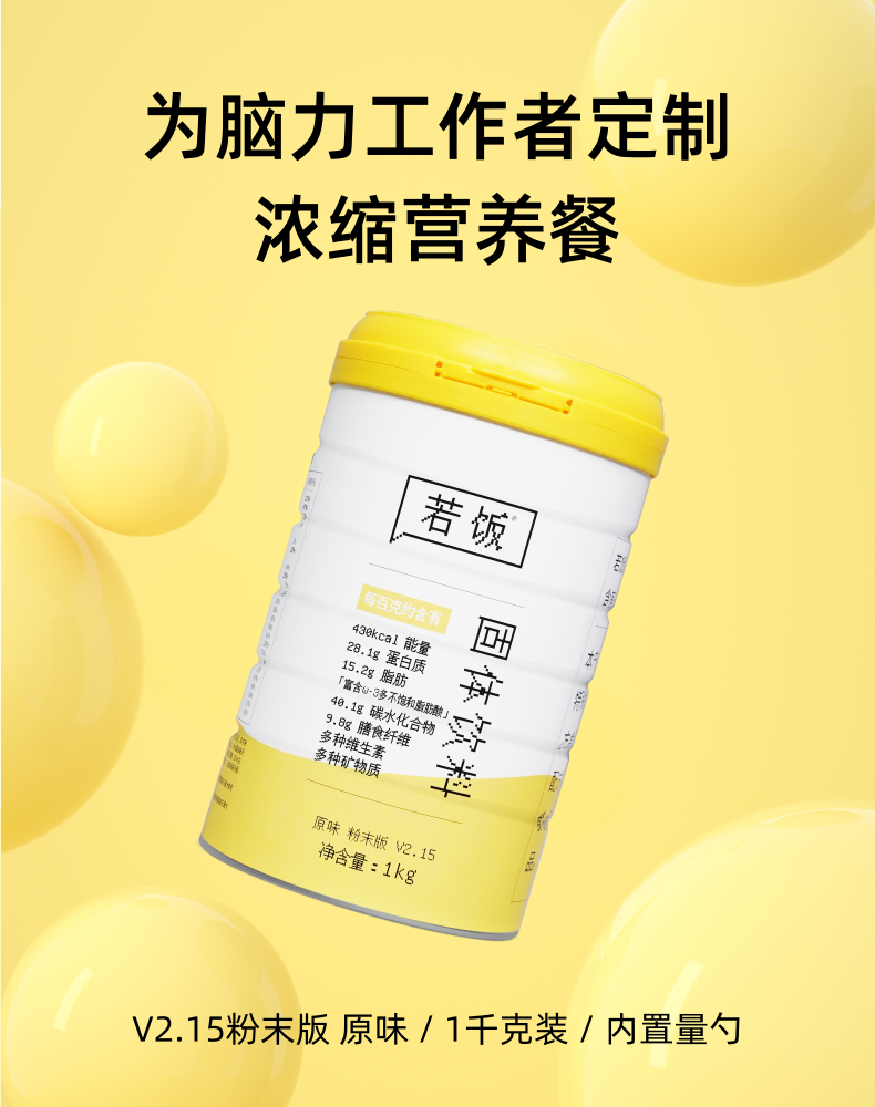 其实2022年粉末罐装升级到V2.13版本,无论是在营养配比还是口味上,都已经是很理想的状态了。但若饭总是想再折腾点什么出来,于是我们多次折磨AI,收集了各种升级的可能性之后,再配合研发团队的方案,最终确定了V2.15版本的新配方,就只为再进步一点点。
