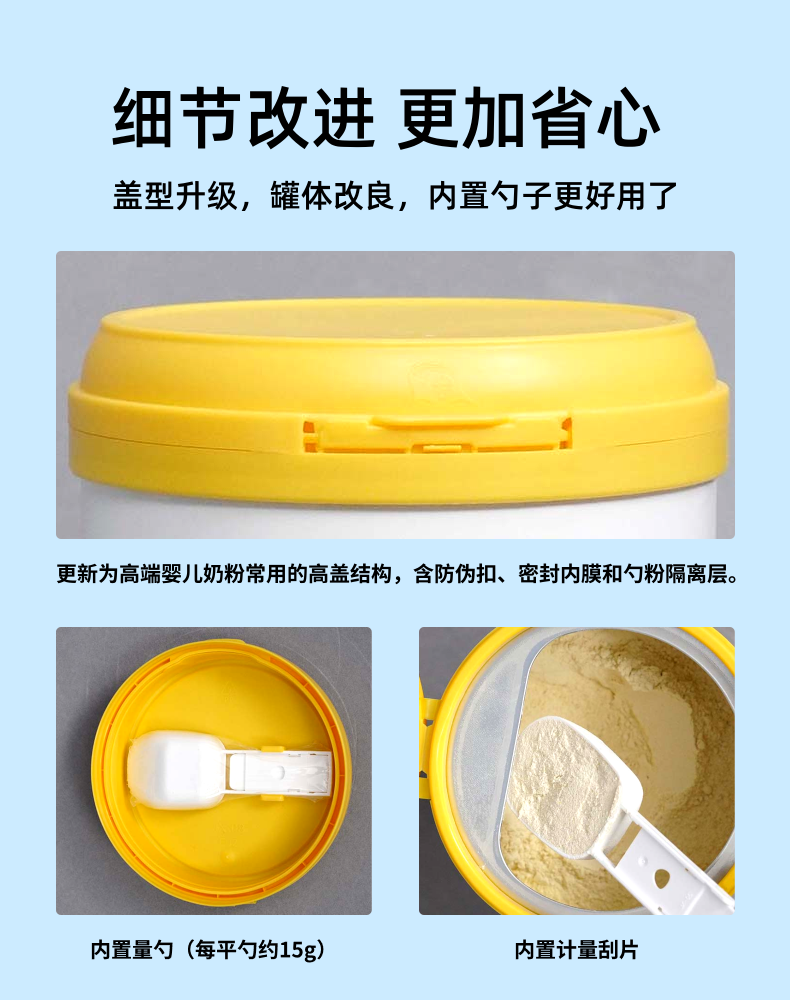 内置量勺由原本的12g升级为15g/每平勺,更方便计算食用量。